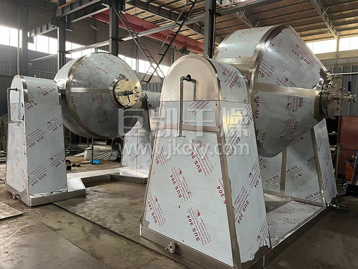 ◎在动力驱动下,罐体作缓慢旋转,罐内物料不断地混合,从而达到强化干燥的目的。