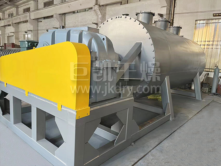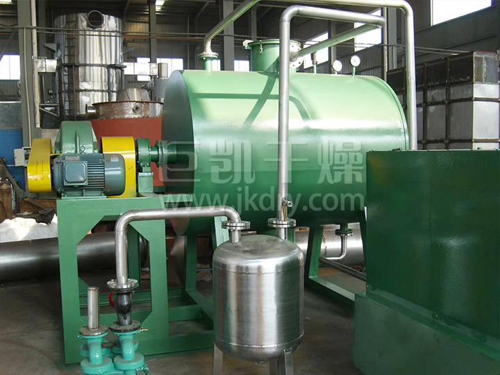 本机是一种新颖卧式间歇式真空干燥设备,湿物料经传导蒸发,带有刮板搅拌器不断清除热面上的物料,并在容器内推移形成循环流,水份蒸发后由真空泵抽出。